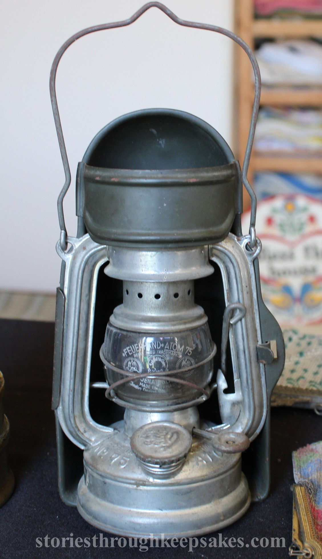 Short and stout, at a height of 18 cm, from base to its dome, is the Feuerhand Atom 75 lantern. It was the product of German engineering, manufactured in the 1930s by the still functioning Feuerhand company. The design and utility has proved to be timeless. In the present day the Atom 75 has become highly prized by homesteaders and antique lantern collectors alike. Several variants of the lamp exist but most historically significant of all, at least in my opinion, is the one found at our sale.