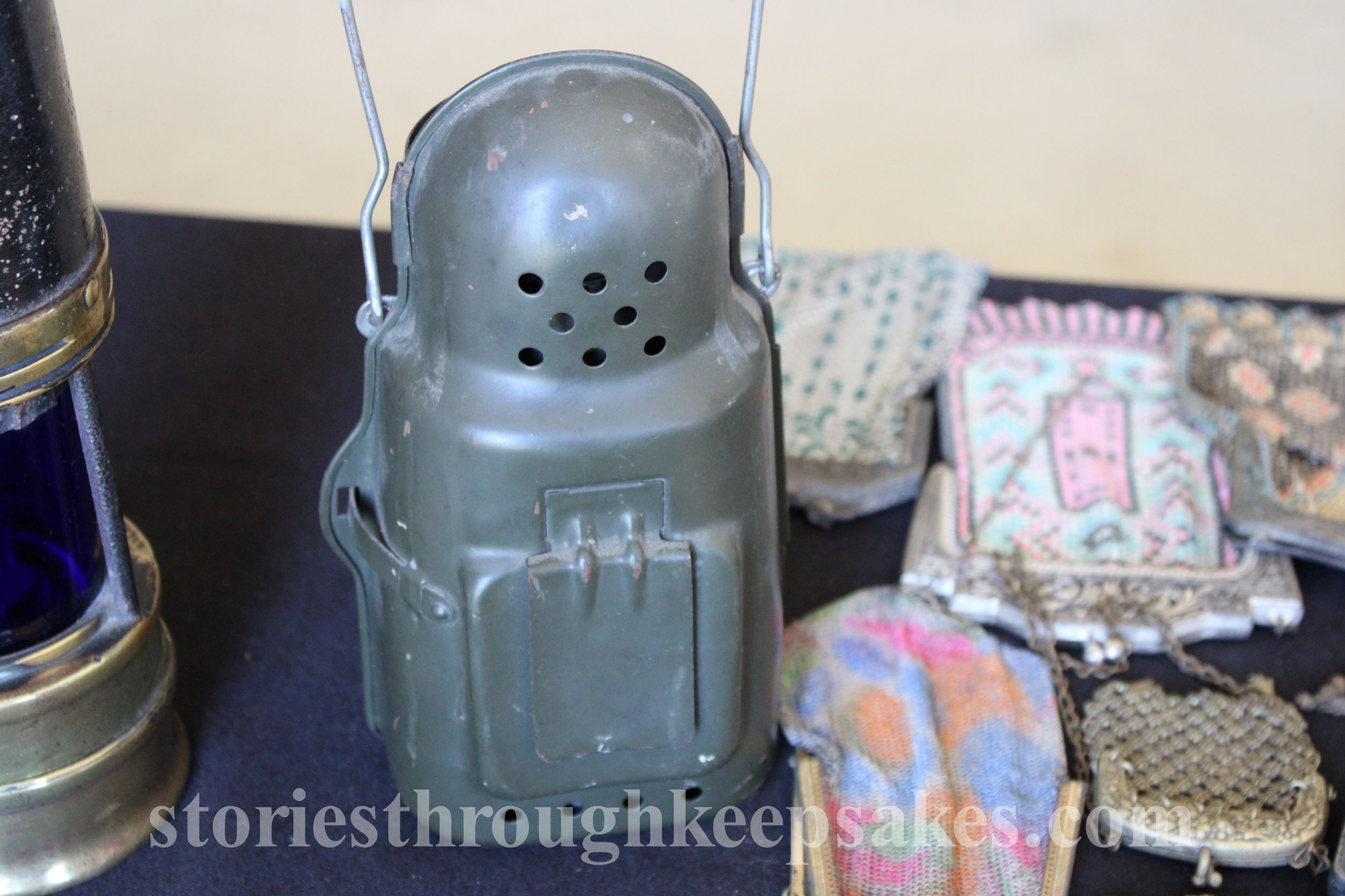 Ours was the Marschsickerungslaterne type- German for marching lantern. Setting itself apart from civilian variants was its metal cover, painted olive drab, fitted behind the body of the lantern. The cover also features a clip allowing the lantern to be worn on a belt, coat, or pack. While on a march a military formation would use four with one at each corner. Two in the front would use clear glass globes while two in the back used red globes.